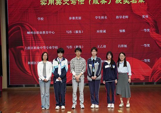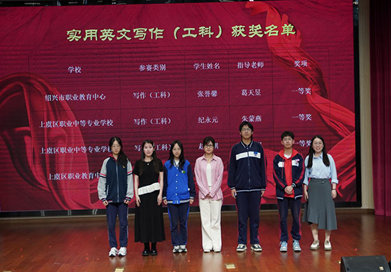 此次赛事的成功举办,不仅为全市中职师生搭建了展示风采、交流学习的平台,更推动了中职英语教学模式创新与教学质量提升,助力培养兼具语言能力与职业素养的新时代中职学子。下一步,绍兴市将持续深化中职英语教学改革,以赛事为纽带,不断夯实师生基本功,赋能中职教育高质量发展。(叶灵芝)