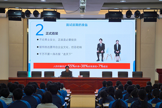 张靖晨老师围绕面试礼仪,从面试前的资料准备、形象管理,到面试中的谈吐举止、行为规范,再到面试后的致谢跟进、结果沟通,逐一拆解关键细节。她以生动的示范和实用的建议,帮助学生掌握全流程礼仪技巧,以得体素养为求职加分。