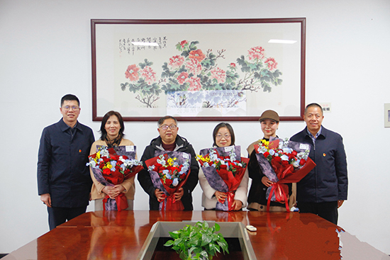 最后,刘忠明书记、夏峰巍校长为四位荣退老师献上精心准备的鲜花,鲜花承载着学校对老师们的崇高敬意与美好祝福。