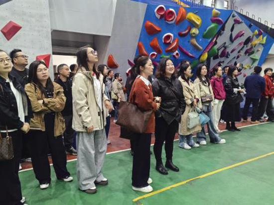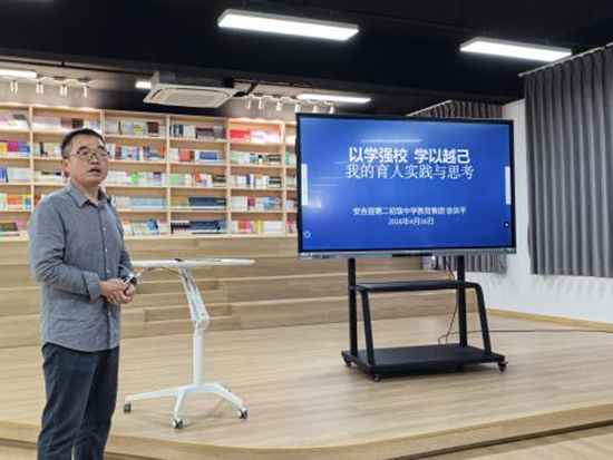 在安吉第二初级中学,学校书记徐吴平向大家重点介绍了学校特色项目——攀岩运动,给学员们留下了深刻印象。随后,徐书记以“以学强校、学以越己”为题,分享了学校育人实践的深度思考。德育处邱主任则围绕行为习惯养成教育,详细介绍了学校的理念引领、制度建设与具体做法。
