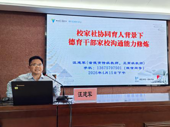 浙江省德育特级教师、正高级教师汪建军以《校家社协同育人背景下教师家校沟通能力修炼》为题,围绕“沟通力”与“共育力”两个核心维度,通过一系列可操作、可落地的实操策略,系统讲解了德育干部如何提升家校沟通的专业素养,讲座既有理论高度,又有实践深度,为学员们提供了切实可行的工作方法。