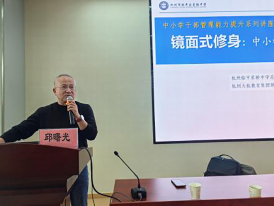浙江省特级教师、正高级教师邱曙光作以《镜面式修身——中小学生规范养成的新路径》为题,从“镜面式修身”的理念阐释到具体实施策略,系统介绍了如何通过“照镜正身”的方式引导学生自我认知、自我规范、自我成长,为中小学生行为规范养成提供了一条全新而有效的路径。