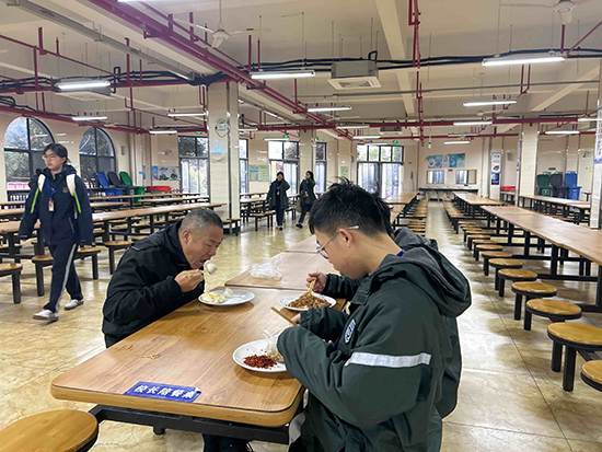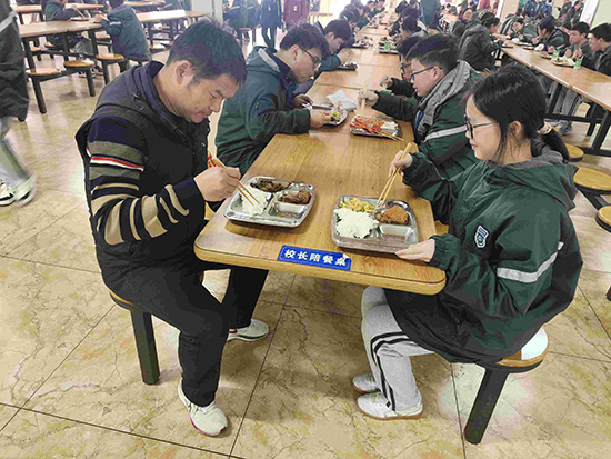 开学首日,学校党委刘忠明书记走进食堂,与同学们共赴 “开学第一餐”,并在 “校长陪餐桌” 前与学生亲切交流,细致了解他们的菜品口味、就餐体验与需求建议。学校一直开展“领导陪餐制”,每日三餐都有领导在学生食堂和学生共同用餐,品尝饭菜口味,现场听取学生对用餐的意见和建议,以进一步提高饭菜质量,保障学生食品安全。