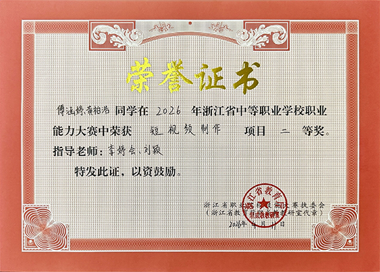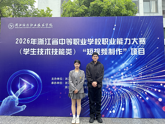 现代商务系:傅涵婷、黄柏浩两位同学在短视频赛项中荣获省二等奖。指导老师:李婷会、刘颖;班主任:陈阳。