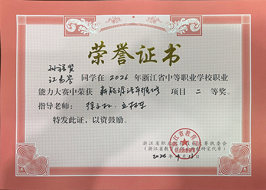 近日,2026年度浙江省中等职业技术学校职业能力大赛圆满落幕。舟山职业技术学校的参赛学子们在赛场上沉着应战、奋勇拼搏,凭借精湛的专业技能与默契的团队协作,在多个赛项中脱颖而出,共斩获二等奖2项、三等奖2项,展现了学校过硬的教学质量与学子们的卓越风采。