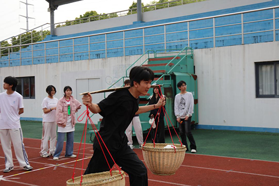 “挑担接力”运物资,6人肩挑“物资筐”,50米接力前行,重现了垦荒队员肩挑背扛、不畏艰辛的坚守,传递着责任与担当。
