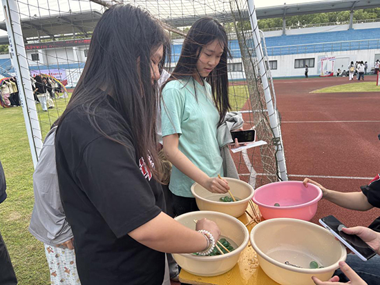 “粒粒皆辛苦”夹弹珠过关赛,30秒内夹起10颗弹珠,让学子们在挑战中感悟垦荒初期粮食匮乏的不易,传承勤俭节约的美德。