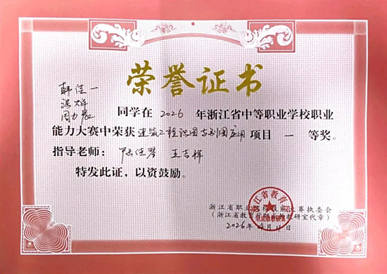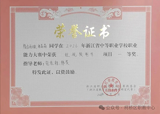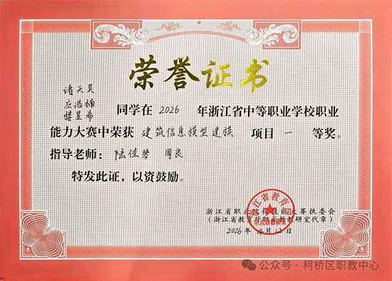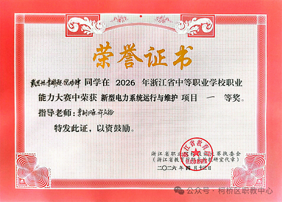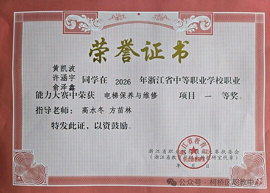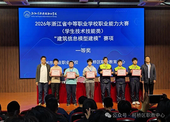 在2026年浙江省中等职业学校职业能力大赛中,柯桥区职业教育中心14支参赛队伍一举斩获6项一等奖、4项二等奖、2项三等奖,其中7支队伍成功出线晋级国赛。