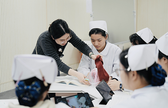 宁波东钱湖护理学校孙欣老师执教的《腹壁的“墙体危机”——腹外疝患者的护理》,以“狐疝”的传统文化意象为切入点,融合AI生成的古人讲述视频,将传统医学智慧与现代护理评估巧妙结合。课堂上,学生分组动手组装腹外疝解剖模型,借助维萨里3D解剖软件立体呈现腹壁下动脉与疝囊的空间关系,并通过希沃小游戏进行斜疝与直疝的鉴别巩固。整堂课以“辨”字为主线,将抽象解剖结构转化为可触摸、可操作的具象体验,充分体现了“做中学”的教学理念。
