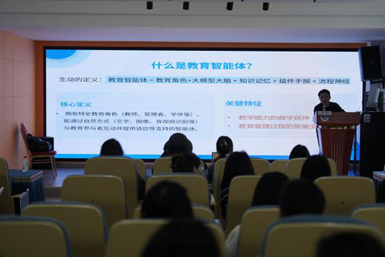 下午的教师工作坊将会议推向高潮。浙江工业大学教育学院实验教学中心主任陈宏教授作题为《教育智能体构建——护理专业教学的“人智协同”创新应用》的专题讲座。陈教授指出,教育智能体不是简单的“AI讲课”,而是以“人智协同”为核心,让智能体成为课堂中的“第三个角色”,实现学生、教师与AI之间的双向赋能。