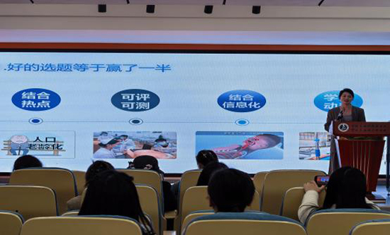 丽水护士学校李汶殷老师以《两次登台,两种心境——在说课大赛中遇见更好的自己》为题,分享了自己从2022年省赛一等奖作品“因胃有你——留置胃管术”到全国信息化教学设计和说课展示典型案例“别样的‘心’动——常见心律失常的识别”的成长历程。她通过自制教具、虚实结合系统等突破教学难点,将抽象的知识转化为生动课堂。两次登台,两种心境,李老师用亲身经历诠释了教学竞赛对教师成长的深刻赋能,激励在场青年教师勇于挑战、不断超越。