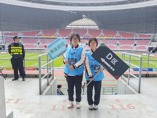 在赛场入口,志愿者们耐心引导球迷有序检票、安检入场,细致解答观众关于座位指引、赛事流程、周边设施等问题,帮助大家快速找到观赛位置;在看台区域,志愿者们协助维护现场秩序,提醒观众文明观赛,及时为有需要的球迷提供帮助。