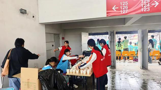 4月18日,2026年浙江省城市足球联赛(吴越杯)在湖州奥体中心火热开赛,由团市委统筹安排、浙江省湖州艺术与设计学校组织的119名“艺小青”志愿者,以饱满的热情和专业的服务,为赛事的顺利开展筑起了坚实的后勤保障防线。