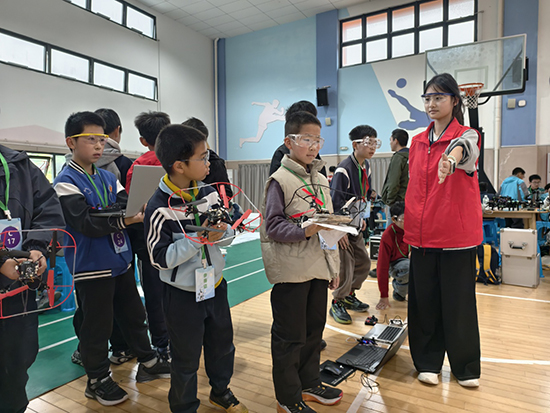 活动筹备阶段,志愿者们充分发挥专业所长,协助裁判团队完成竞赛场地搭建与设备调试工作。在竞赛现场,志愿者们化身“技术小管家”,为参赛选手提供实时支持。他们用专业术语与通俗讲解相结合的方式,既保障竞赛公平性,又让中小学生选手感受到技术温度。活动结束后,舟山市教育服务中心的工作人员称赞学生志愿者们“展现了精湛技艺与奉献精神的完美融合,为全市职业教育树立了标杆”。