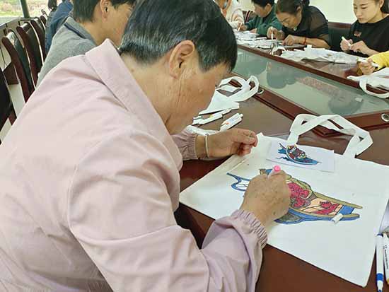 创作现场气氛融洽,技艺娴熟的学员率先完成构思精巧之作,进度稍缓者则相互协作、互促共进,于调色勾勒间交流心得,于欢声笑语中体悟非遗魅力。此次创作的帆布袋兼具实用功能与艺术价值,既承续渔民画传统韵味,又契合日常应用场景,使非遗文化以更为贴近生活的方式实现活态传承。