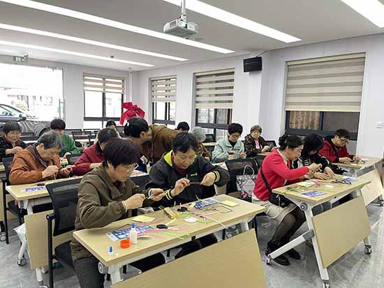 活动伊始,社区工作人员提前摆放好彩纸、剪刀、胶水、冰箱贴底座等手工材料,北仑区文化馆孙人建老师向居民细致讲解衍纸起源、基础卷捏技法,以及冰箱贴的制作流程。春日暖阳下,居民们全神贯注投入创作,通过卷、捏、拼、贴等手法,将彩色纸条化作一瓣瓣花瓣、一片片叶子,一个个精致别致的春韵主题冰箱贴逐渐成型。