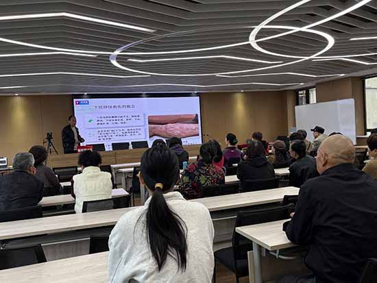本次讲座特邀百姓缘张明主任主讲。讲座中,张明主任结合多年临床经验,用通俗易懂的语言,围绕下肢静脉曲张的发病原因、早期症状、危害后果、日常预防以及绿色无创整合疗法等核心内容展开细致讲解,帮助居民科学认识该病症。同时,针对居民日常久坐久站、不良生活习惯等诱发因素,给出了实用的预防建议和居家护理方法。